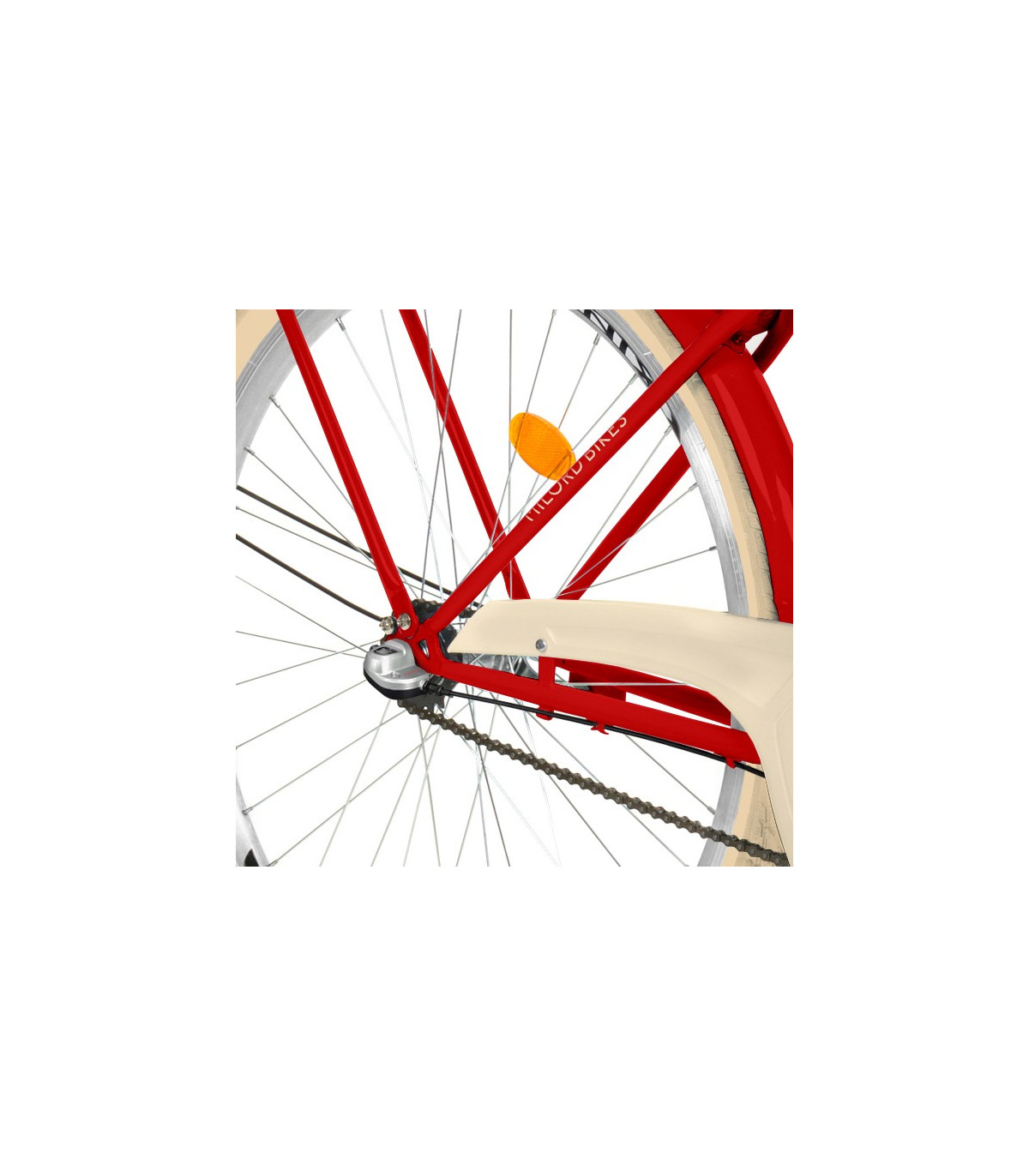 • Reifen: Cremefarbene 26x1,75 Reifen, die nicht nur stilvoll aussehen, sondern auch hervorragenden Grip bieten und Stöße von unebenen Straßen dämpfen.