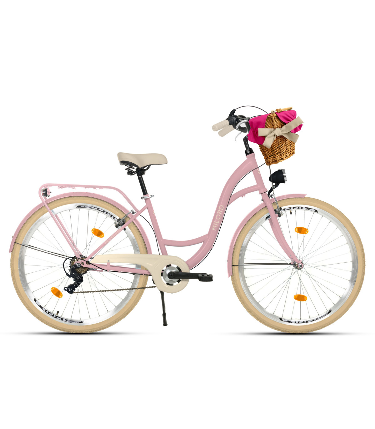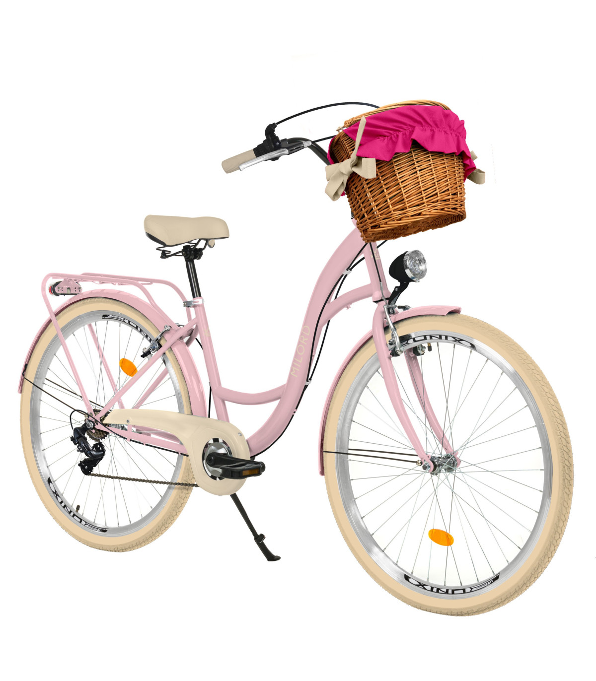 Milord Komfort Fahrrad Mit Weidenkorb Damenfahrrad, 26 Zoll, Rosa-Creme, 7 Gänge
